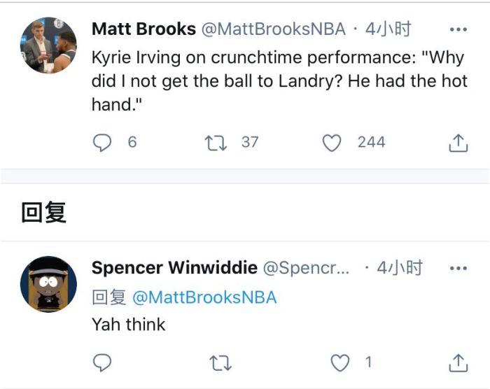 欧文在赛后采访的时候首先是说到了杜兰特的伤退情况,欧文说每一次看见队友倒下都是沉重打击,现在只能祈祷杜兰特的伤情不太严重了。而且欧文本场比赛一共只拿到了20分,他甚至不是篮网队内得分最高的球员,这是因为热火对于欧文形成了针对性防守,他在赛后采访的时候也提到了热火对于他的防守十分聪明。而篮网之所以可以和热火打到最后时刻,那都是因为沙梅特这个奇兵。