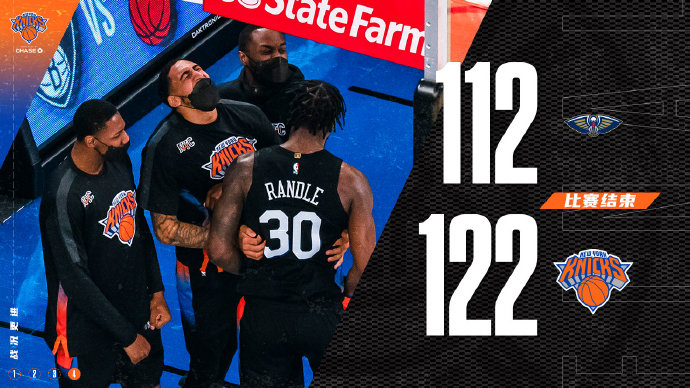 尼克斯122-112力克鹈鹕 兰德尔33+10 罗斯23分 锡安34+9