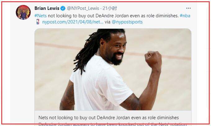 关于这样的疑问,篮网队随队记者Brian Lewis在最近的一篇报道中就透露:即使小乔丹戏份减少,但篮网队也不会选择买断他!