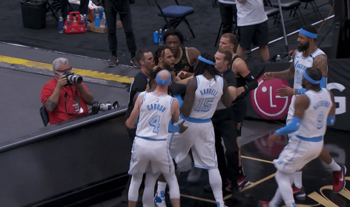 NBA官方宣布湖人和猛龙冲突的处罚结果,声明:猛龙球员本布里、范弗里特以及湖人球员霍顿-塔克因为在冲突期间离开板凳席,而被禁赛一场,但没有罚款。