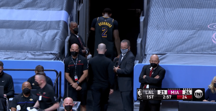 詹眉观战!庄神复出8分钟6+3+3+2,离场回更衣室后重返替补席