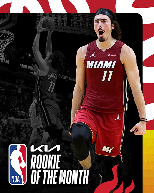 本赛季的第一次东部月最佳新秀奖项,属于热火的小哈梅-哈克斯。10-11月的比赛中,哈克斯场均贡献12分3.9篮板2.5助攻,投篮命中率52.9%,三分命中率39%,罚球命中率87.5%。热火官方晒海报祝贺他获奖。