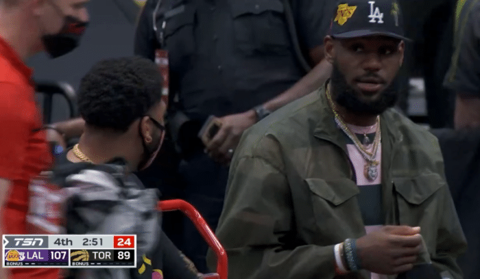 此前湖人客场击败猛龙,詹姆斯不仅再次随队出征客场,而且已经脱掉保护靴;虽然因伤休战,但场边的詹姆斯很积极——不满判罚时,詹姆斯为队友找裁判理论;塔克出现失误时,詹姆斯亲自指点小弟;湖人早早锁定胜局时,詹姆斯满脸笑容,和浓眉闲聊。