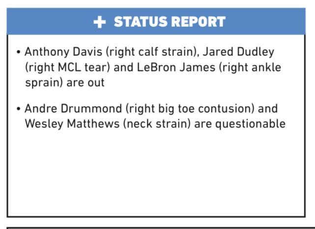 自从詹姆斯缺阵以来,湖人只取得3胜6负的战绩,排名降到西部第五。他们只领先西部第七的独行侠3个胜场了。如果湖人不能尽快反弹,他们完全有可能掉到附加赛的范围内。