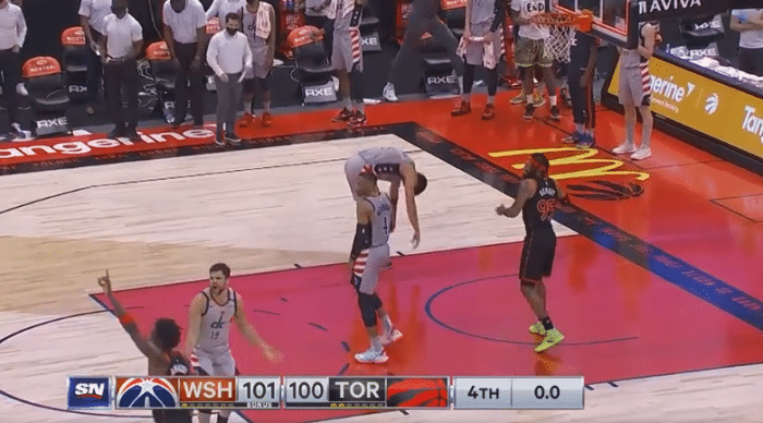 比赛最后时刻猛龙将比分追成98平,特伦特跳投命中,关键时刻威少三分命中回应,奇才取得了1分的领先优势,27.4秒西亚卡姆突破上篮被裁判吹罚进攻犯规,奇才再进一球比赛就将彻底失去悬念,8秒钟的时候,内托近在咫尺的上篮没有打进,猛龙没有叫暂停,特伦特抢到篮板杀过半场,三分线凶仓促出手压哨命中,猛龙凭特伦特的三分球绝杀比赛,最终全场比分定格在了103:101,奇才遗憾输球。在命中这记三分绝杀后,所有的猛龙球员疯狂庆祝,而奇才这边的球员则是呆立在原地,内托对于裁判的吹罚则是十分的不满意。