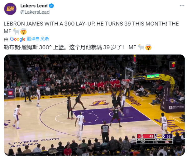 詹姆斯半场14分3篮板3助攻,360度拉杆上篮引热议,这一球太牛了,美媒刷屏转发,《露天看台》直呼时光倒流。