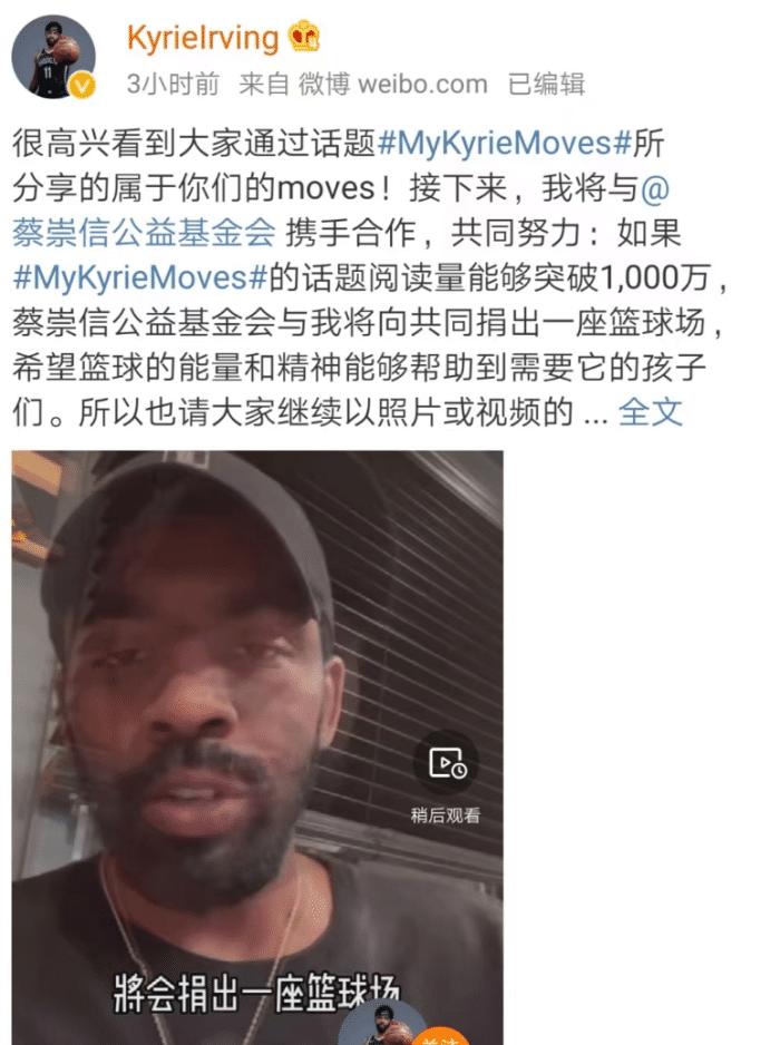 翻看欧文的微博会发现这件事是真实的,不得不说欧文是一个暖心的篮球人!也许有些人会不喜欢欧文时常发表的一些言论,调侃他为“欧神仙”“哲学欧”但必须要说,欧文在做公益这件事上真的没得黑,一直以来他都在尽自己最大的努力回馈社会,包括捐款给WNBA,为各类社会事件发声,以及此次的捐赠篮球场,善举还是很多的!