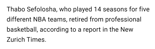 来源:24直播网04-01 17:1024直播网4月1日讯 ,据美媒报道,36岁老将萨博-塞弗洛沙正式宣布退役,他在NBA打了14个赛季,效力过5支球队(公牛、雷霆、老鹰、爵士和火箭),生涯累计出场869场常规赛,场均贡献5.7分3.7篮板。