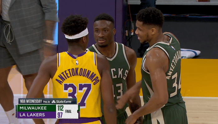 赛后字母哥三兄弟站在一起寒暄以及紧紧拥抱,字母哥+字母哥哥哥+字母弟,一家三兄弟同场竞技,如此画面太暖心;目前字母哥是三兄弟中腕最大的,字母弟是字母家第一位夺得NBA总冠军的。