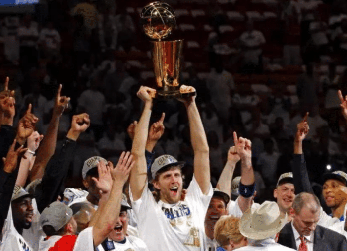 11年的独行侠季后赛首轮面对的是,拥有黄曼巴和阿尔德里奇所带领的开拓者。前4场比赛下来,双方战成了2比2平。之后诺维斯基连续发威,率队连扳两场淘汰了开拓者。次轮他们将面对的是,拥有科比布莱恩特的卫冕冠军湖人。前三场比赛下来,湖人出乎意料地以0比3落后了独行侠。大家都知道科比会在生死战带队进行殊死抵抗。但诺维斯基却用他63.8%的投篮命中率,狂砍32分9篮板送湖人回了家。西决遇到了更富冲击力的雷霆。尽管雷霆拥有杜兰特、威少、哈登、伊巴卡等天赋满满的球员。但独行侠还是以4比1轻松淘汰了雷霆。总决赛遇到了不可一世的巅峰热火三巨头,独行侠还是以4比2淘汰了他们。诺维斯基在总决赛第四节场均拿到10.5分,命中率高达53.2%!