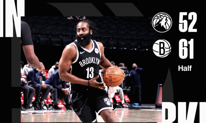 第二节,哈登增加了个人出手数,但效率并不高,单节7投仅命中2球,森林狼多点开花追回3分!半场战罢,篮网还是手握9分优势。整个上半场,欧文送出19分3助攻,哈登贡献12分8助攻,两大巨星算是常规操作。