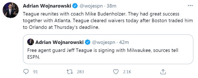 去年休赛期,蒂格和凯尔特人签下一年260万的底薪合同,如今被裁掉后,蒂格继续以底薪签约雄鹿,薪金专家马克斯表示,雄鹿签下蒂格后依然在奢侈税线以下。