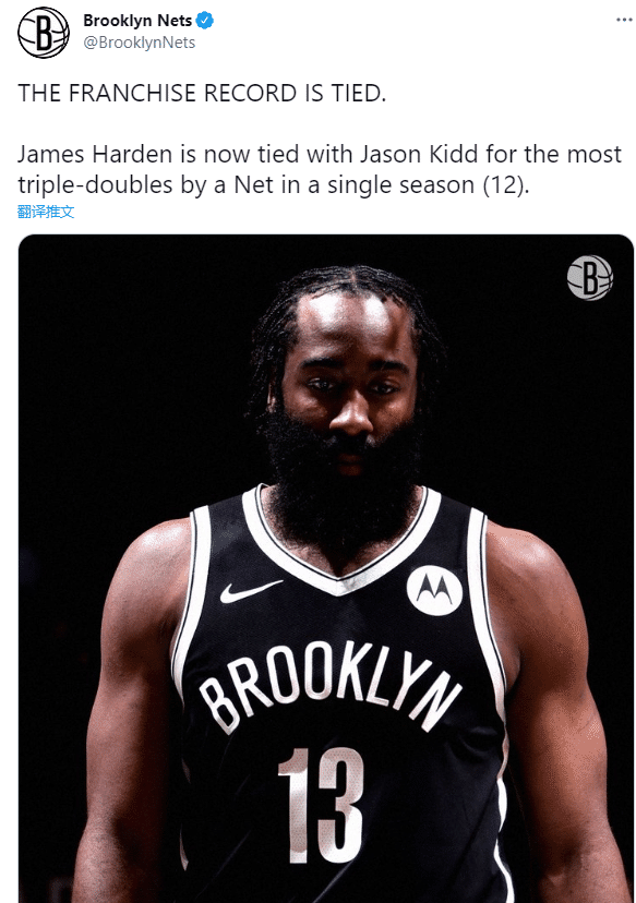 哈登一战又刷爆多项历史纪录——常规赛总助攻达到5703次,连续超越伯德和韦德两大名宿升到历史助攻榜第42位;篮网生涯第12次三双到手,追平基德并列队史第一;篮网生涯19次20+10追平马布里并列队史第二。