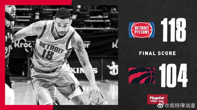 NBA常规赛,活塞坐镇底特律迎战猛龙,近期两队日子都不好过经历连败,猛龙2连败下降到东部第11位,活塞更是4连败后已经东部垫底。首节双方手感都不错展开三分对飚,活塞末段一波7-0帮助建立7分的领先,次节活塞又打出进攻高潮,凭借出色的外线手感将分差拉开至20分以上,但范弗里特马上连续得分帮助猛龙追分,半场结束活塞领先15分。易边再战,活塞外线手感依然保持的不错,猛龙只能通过内线苦苦追分,三节结束活塞依然领先17分,末节活塞将分差拉开到20分以上,而且总是能回应猛龙的追分球,最终活塞轻取猛龙,终止4连败的同时送给对手3连败。