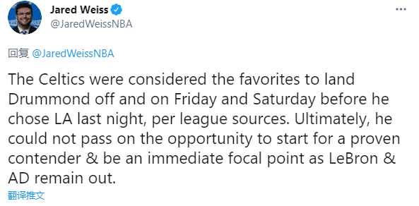 凯尔特人记者Jared Weiss报道,在当地时间周五和周六,凯尔特人一度被视为庄神最中意的下家。但是庄神无法拒绝成为湖人首发以及在詹眉不在的情况下成为整个湖人队的焦点,所以庄神和潜在下家会面后,最终选择签约湖人,他想在今天正式签约后便为湖人出战。