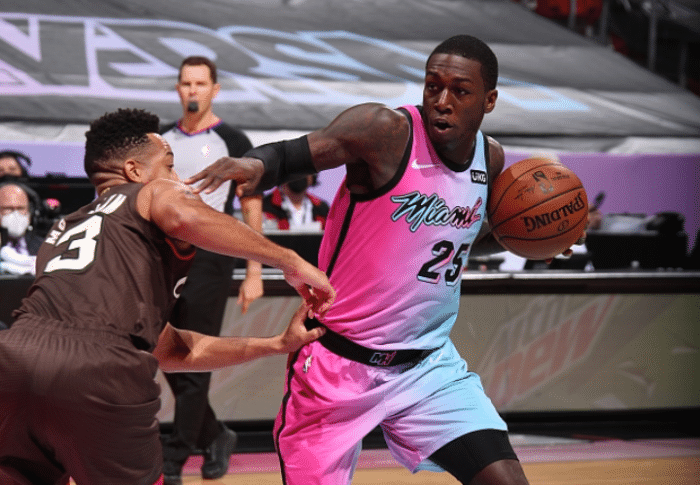 比赛开始后,麦科勒姆的手感滚烫,首节比赛便狂轰21分。不过热火方面也非常顽强,并没有让比分拉开,首节结束开拓者仅仅领先7分。随后,热火在阿德巴约和希罗带领下迅速迫近并反超比分。第四节,热火一度轰出11-0的攻击波,取得10分领先。不过随后开拓者迅速追近比分。