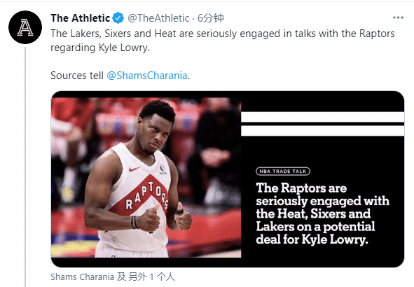 来源:24直播网03-26 12:0224直播网讯交易截止日倒计时,大交易真要来了吗?据TA名记Shams报道,湖人、费城大队、热火正在与猛龙认真讨论关于洛瑞的交易;三队开始争夺35岁全明星控卫,此前猛龙大胜掘金终结9连败,洛瑞赛后疑似做出向猛龙告别的手势,如今已经到了交易的关键时刻。