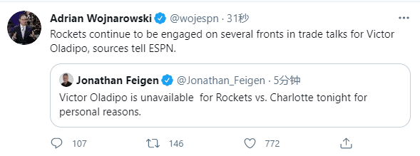 真因曝光!奥拉迪波因个人原因缺席比赛,名记:火箭正与多支球队谈判