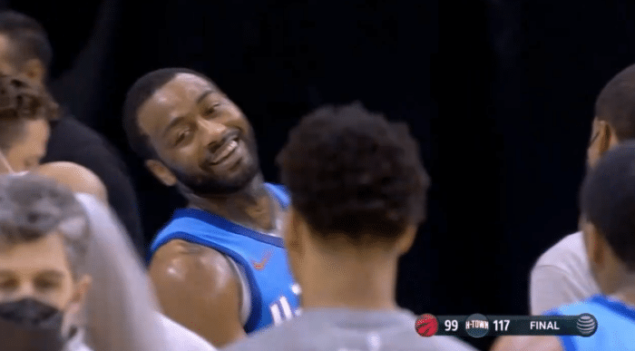 火箭赢球之后,多名球员表情平静,赛拉斯也十分淡定,新核沃尔开怀大笑,先是把球砸在地板上,然后跳起来抢球,然后咧嘴大笑,和队友击掌庆祝之后,沃尔满脸笑容,紧紧拥抱主教练赛拉斯;沃尔是全队最开心的球员,全场出战36分钟30投8中轰下19分11助攻10篮板还有2盖帽1抢断,美中不足的是投篮命中率太差。