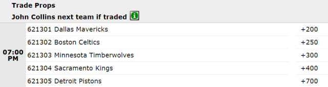 独行侠有望成为交易市场上的大买家,除了庄神,他们也有兴趣得到科林斯。目前,独行侠通过交易得到科林斯的赔率是+200,位列各队之首。排名第二至五位的依次是凯尔特人、森林狼、国王和活塞。凯尔特人拥有一个价值2800万交易特例,他们也很有能力追逐可能离队的几位球星。