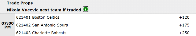 魔术并没有兜售武切维奇,但他们愿意聆听相关报价。这位全明星中锋也有不少追求者,出现在交易下家赔率榜上的有三支球队。领跑的是凯尔特人(+120),马刺和黄蜂也对他有意,分列二至三位。
