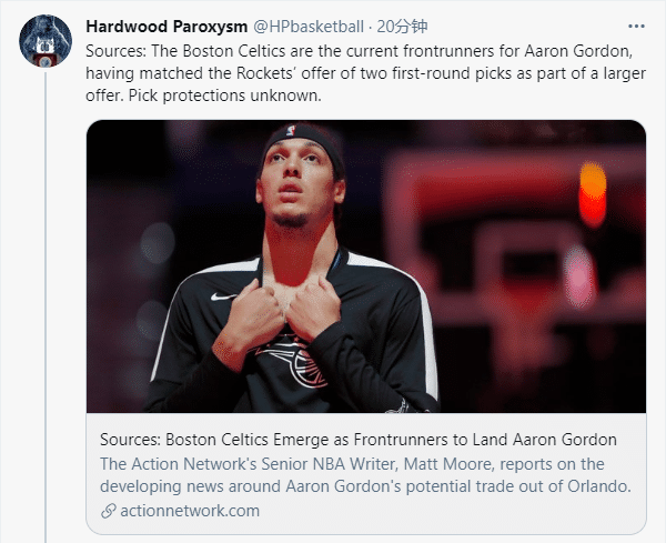 根据早前的报道,阿隆戈登已经向魔术管理层请求交易,魔术方面也迅速展开动作。而火箭与魔术一度接近达成交易,但最后时刻一个小分歧扼杀了交易。据悉,火箭给出的筹码是两个首轮,不过戈登表示自己没有兴趣与火箭续约。目前戈登的合同处于倒数第二个赛季,明年夏天合同将会到期。能否和新球队续约,也是得到他的球队需要考虑的问题。