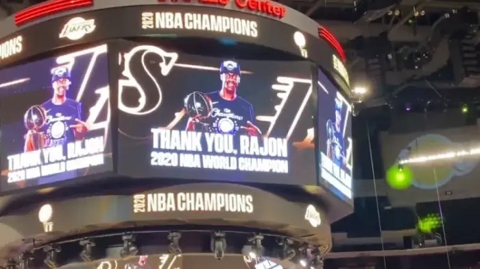 比赛期间,湖人也为隆多播放了致敬视频,但没有按照惯例在赛前为他颁发总冠军戒指。后来记者Bill Oram透露隆多早已从湖人那里领到总冠军戒指。