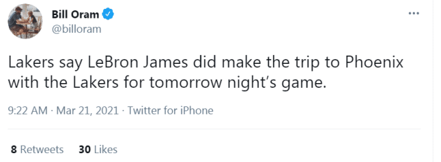 詹姆斯随湖人飞往菲尼克斯!他不想和队友分开,见证保罗助攻里程碑?