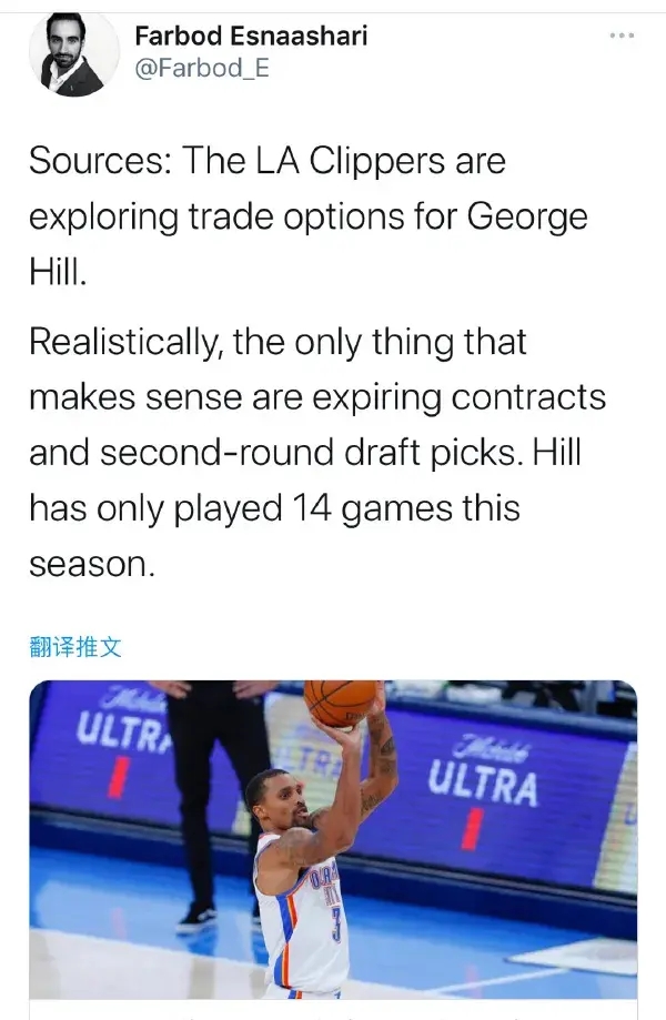 除此之外,快船还与雷霆后卫希尔眉来眼去,正探索寻求交易,他本赛季场均上阵26.3分钟,得到11.8分2.1篮板3.1助攻。