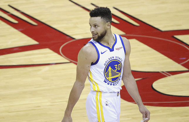 这是在比赛刚刚开始,勇士防守成功之后转换进攻,普尔运球过半场直接一条龙命中追身三分球,这个球在出手之后库里就开始在场边庆祝了,他从板凳席上站起来,举手欢呼,随后球果然命中。