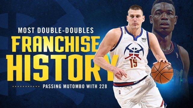 其二,这也是约基奇拿下生涯第228次两双数据,他超过了穆托姆博,成为掘金队史上的两双王。