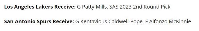 于是美国知名体育媒体《nbaanalysis》专栏记者Brett Siegel撰文分析,建议湖人打包送出波普和麦金尼,从马刺换来米尔斯和2023年次轮选秀权。