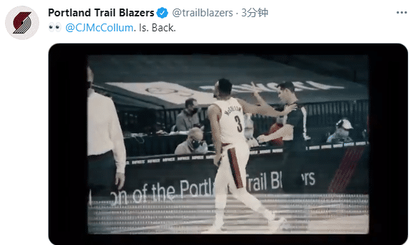 目前开拓者已经官宣喜讯,官方发推写道:CJ-麦科勒姆回来了!