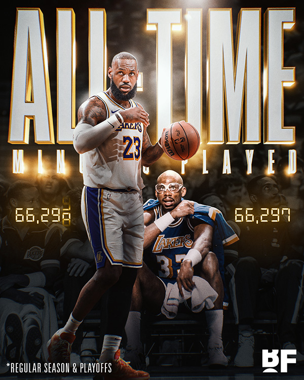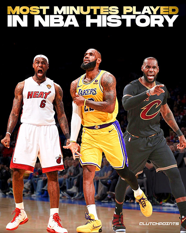 66298分钟!詹皇又改写历史:总上场时间超越天勾独享历史第一