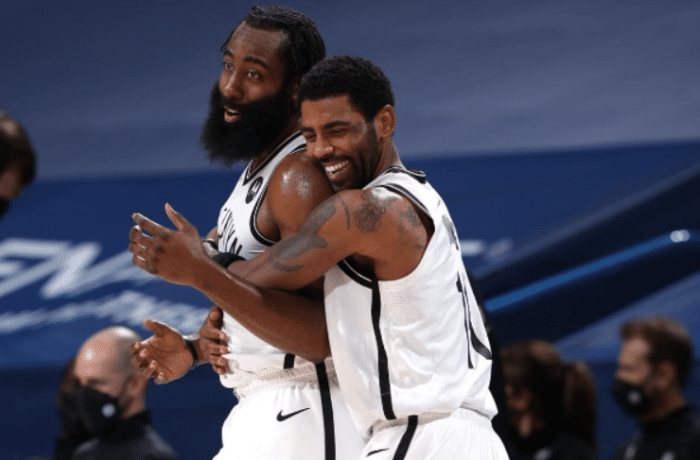 这个亲密的搂抱,也不免令人想起此前哈登和欧文的“亲密照”。当时哈登到队没有几场比赛,篮网也处于磨合的阵痛期,战绩比较糟糕。外界一度猜测,欧文和哈登两位一直以来都担当主要持球手的球员,会出现一定的嫌隙。但欧文在一场比赛中,从背后亲密地抱住了哈登。