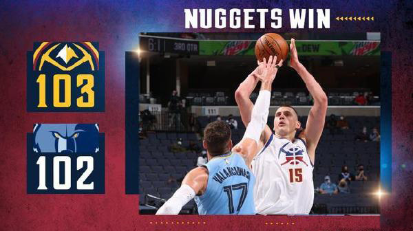 北京时间3月13日讯 西部第五的掘金全明星周末后的首次亮相,客战状态正热的灰熊,四连胜的掘金誓在约老师的带领下拿下开门红。首节双方手感都非常出色,比赛也从开局就陷入了僵持,节末灰熊凭借更少的失误和出色的手感逐渐掌握了比赛的主动权。次节掘金虽然凭借11-4的进攻高潮不断迫近着比分,但作为全联盟内线得分最高的球队,灰熊持续的冲击还是让掘金内线难以招架。半场结束,灰熊55-53领先掘金2分。休息回来风云突变,灰熊全队手感冰凉,半节只得5分,而掘金节中打出20-7的进攻高潮,不断扩大自己的领先优势,不过读秒阶段莫兰特命中半场神奇压哨三分,帮助灰熊保留着比赛的悬念。末节双方比分紧咬,掘金微弱优势领先,关键时刻,约老师外投里勾连得五分,而梅尔顿的三分和克拉克的封盖留给了灰熊反超绝杀的机会,不过莫兰特最后时刻错失绝杀,掘金也在客场103比102一分险胜灰熊,豪取五连胜。