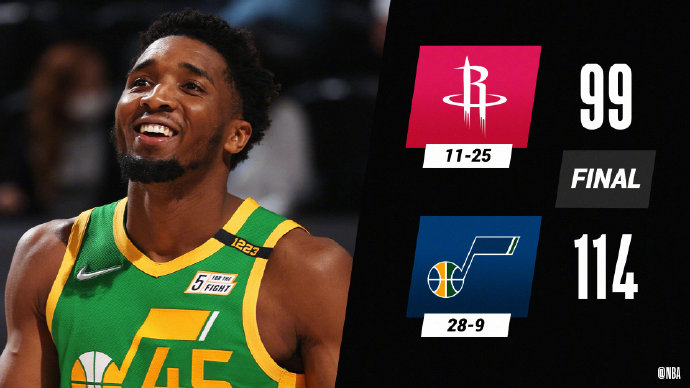 爵士(28-9):米切尔28分8助攻7篮板、康利20分4助攻3篮板、博格达诺维奇15分5篮板3助攻、克拉克森15分、戈贝尔14分13篮板6盖帽、奥尼尔10分11篮板3助攻3抢断、英格尔斯8分3篮板3助攻、尼昂4分4篮板2抢断。