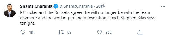 从火箭主帅的回应来看,算是实锤塔克拒绝上场表达内心的不满;赛后赛拉斯更是宣布重磅消息,塔克和火箭达成共识,塔克将不再为火箭出战,火箭正在努力寻找交易方案。