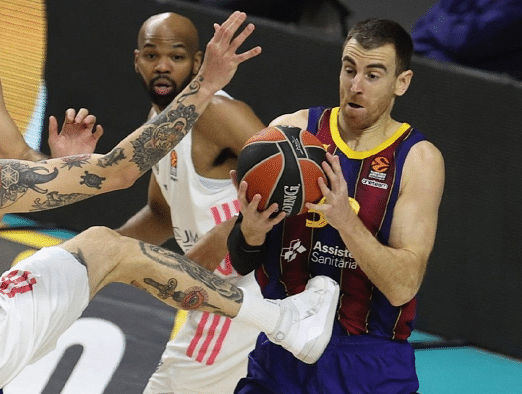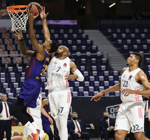 男篮国家德比!巴萨5分险胜皇马强势领跑积分榜,米罗蒂奇13分