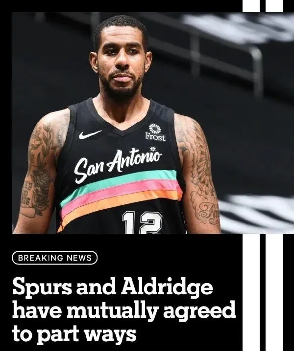 而且是主帅波波维奇亲自官宣,称内线核心阿尔德里奇将会离开马刺,并且不会再为球队出战比赛。