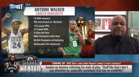来源:24直播网03-11 16:0924直播网讯 北京时间3月11日,前NBA球员安托万-沃克在节目中再次回击哈登,他表示自己完全有资格评论哈登。事情起因是在全明星赛前沃克表示“凯尔特人没交易得到哈登是正确选择”随后两人打起了嘴仗!