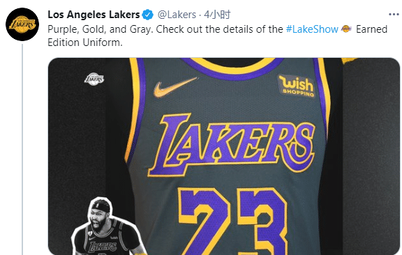 湖人将在常规赛第二阶段的首战也就是3月13日在主场迎战步行者的比赛中,湖人全队将会身穿这款特别款球衣出战;目前湖人24胜13负排名西部第三,詹姆斯和浓眉本赛季的最终目标是带队冲击两连冠。