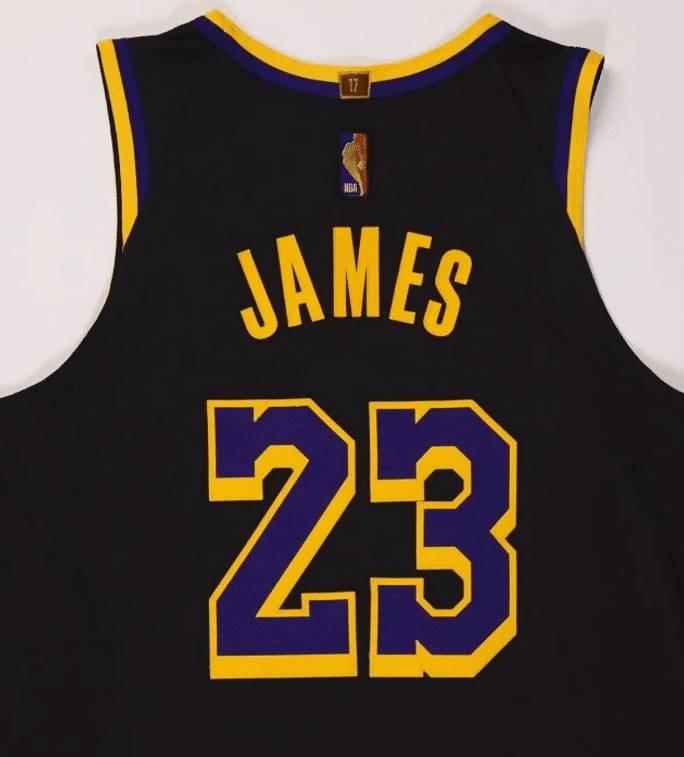 湖人特别版球衣上的细节满满,球衣上的耐克商标和衣摆下方的标签都是金色的,这是一款黑色战袍,球衣领口是紫金配色,湖人队徽以及球员号码和名字也是紫金配色,球衣背后绣着金色的数字“17”和NBA logo,各种细节都凸显出卫冕冠军与众不同的身份。