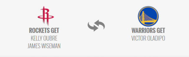交易方案2:勇士送出乌布雷和怀斯曼,得到火箭的奥拉迪波。