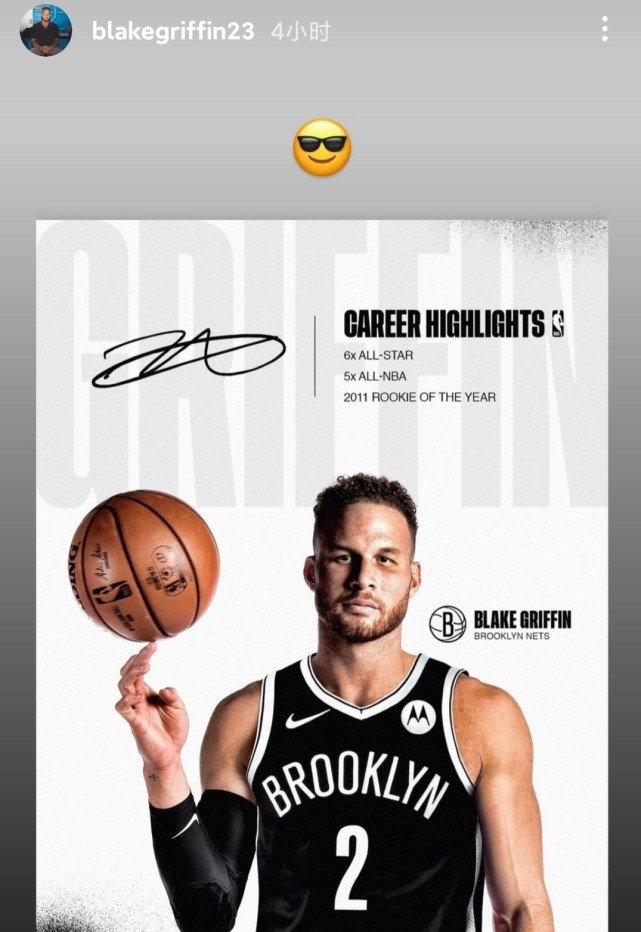 今日篮网官宣格里芬正式加盟,他本人也在个人社媒上立刻晒出了自己的照片,附上一个戴墨镜微笑的表情,能了解到他是十分开心的。此前他与活塞达成买断放弃了1300多万的薪水,赛季剩余薪水120万美元,与篮网签下的是老将底薪!篮网总经理肖恩马克斯表示“我们很幸运能够在阵容中增添格里芬这样对比赛产生影响力的球员,布雷克是一个全能的前场球员,他在我们的联盟有着一长串的功绩,我们对他即将带来的影响感到兴奋。”