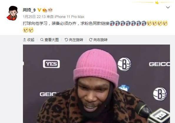 就比如之前在接受媒体采访时杜兰特选择戴上一顶粉红色的小帽子接受采访,立刻萌翻了无数球迷,原来小帅内心还是个少女啊,甚至引来了大洋彼岸我们CBA中的周琦争相模仿,甚至在微博求购同款小粉帽!