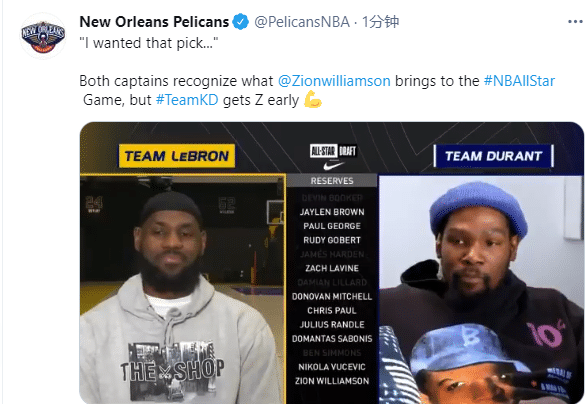选人过程中,詹姆斯坐在湖人训练馆,杜兰特则是斜躺沙发上,多次露出符合小帅气质的笑容;当詹姆斯选择西蒙斯时,杜兰特表示他想要西蒙斯,巧了,随后杜兰特选走锡安之火,詹姆斯略显遗憾:我想要选他的;两大队友都有点遗憾,要不要现场搞一波交易呢?没有,曾经詹姆斯在直播选人时交易韦少换来西蒙斯。