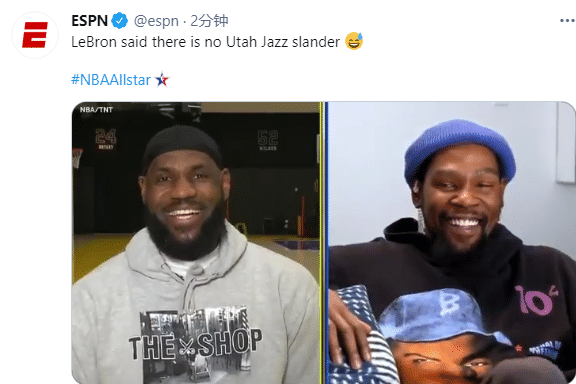 不过戈贝尔和米切尔是最后被挑选的两名球员,外界纷纷质疑联盟第一的爵士被针对的,对于为何两大队长都是最后才选爵士球星?詹姆斯在直播中回应此事,当时杜兰特和詹姆斯都咧嘴大笑,TNT直播间也是欢声笑语,都被逗笑了。