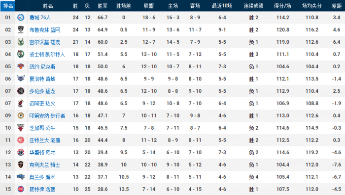 本赛季常规赛是有压缩的,从此前的82轮到了本赛季每支球队只有72场,所以36轮之后半程冠军也就正式出炉,费城以24胜12负,高居东部第一。篮网这边暂时多赛一场他们的战绩是24胜13负,比费城多输一场,从而无缘东部半程冠军,确实有些遗憾。