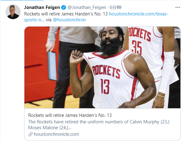 恭喜!火箭将退役哈登13号球衣,老板已经明确表态,比肩姚明等传奇